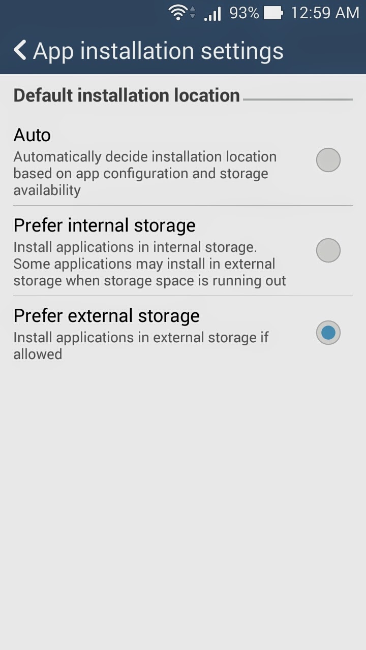 Masih di ASUS customized settings, ada fitur lain yang menarik, yakni App instalation. Di sini, pengguna bisa memilih di mana lokasi instalasi aplikasi yang sudah didownload. Jadi, tidak perlu seluruh aplikasi diinstalasikan di internal storage, agar tidak segera penuh.